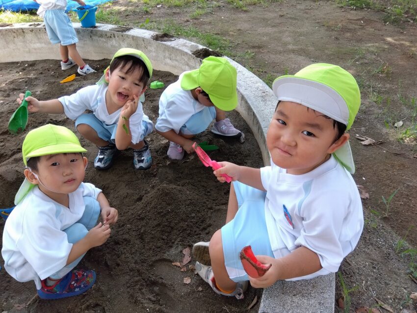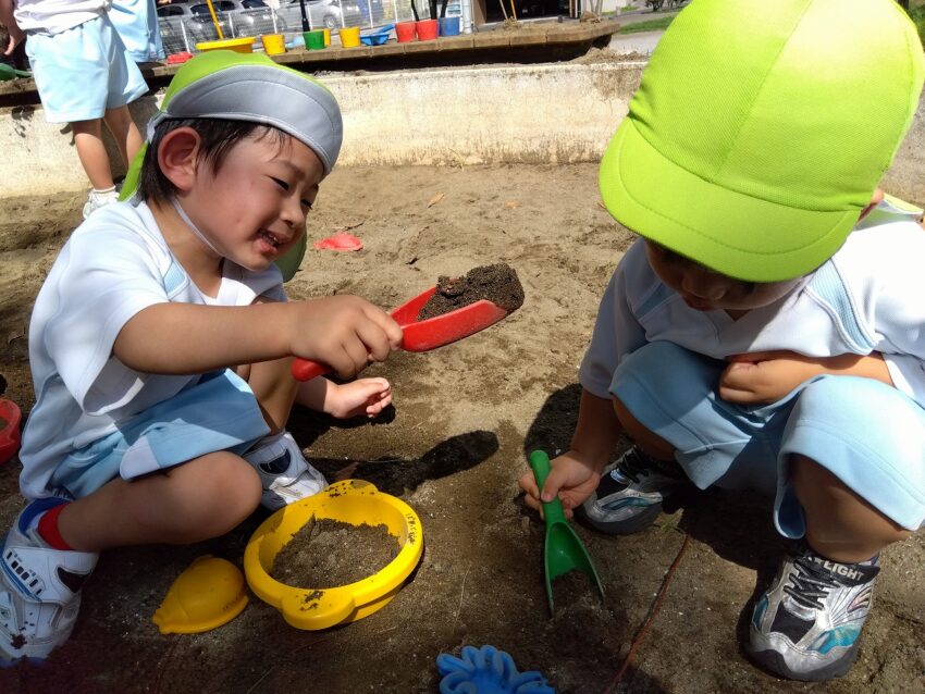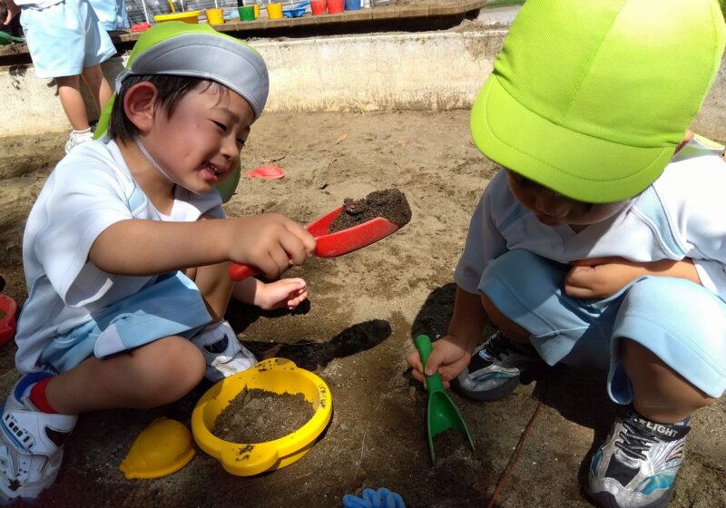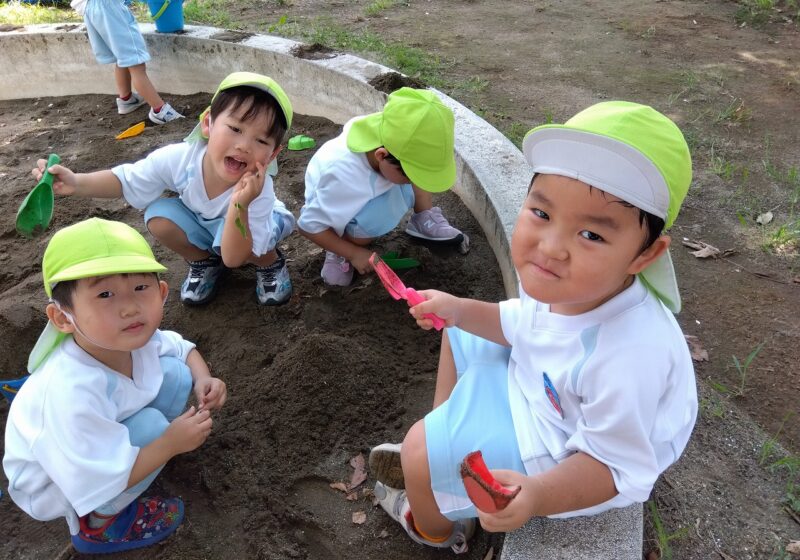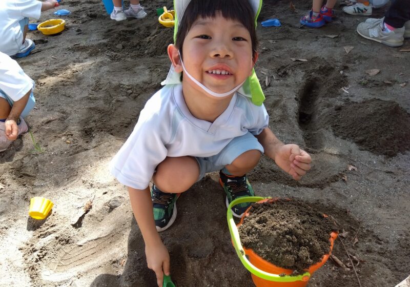 今日は砂場遊びが大人気で、お店屋さんになりきってお友達と遊んでいましたよ☆