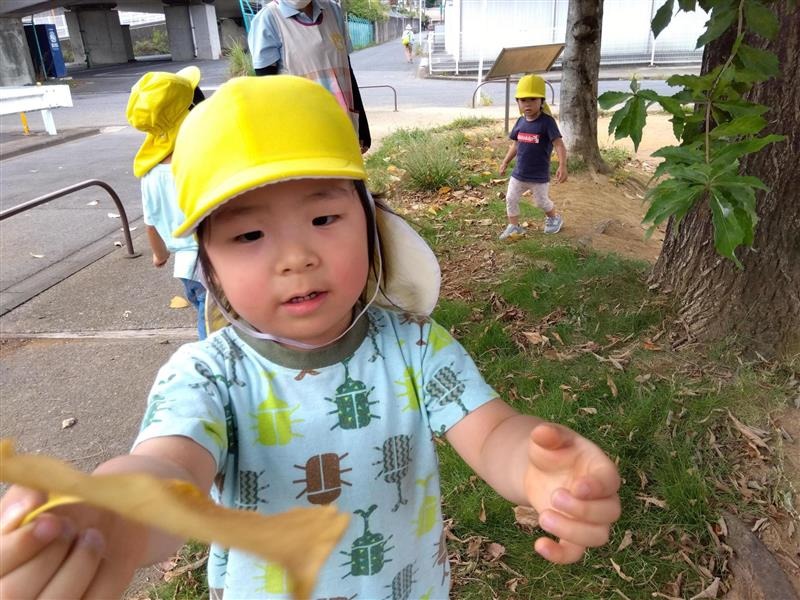 公園ではどんぐりや木の実を拾ったり落ち葉を探したりなど秋を感じられました♪