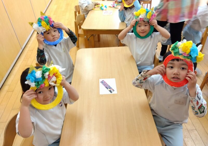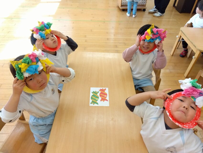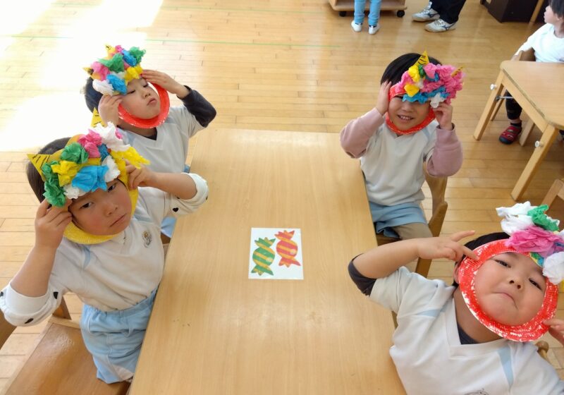 2/3の節分の日では、制作した豆を入れる三方とお面を使って楽しみたいと思います☆