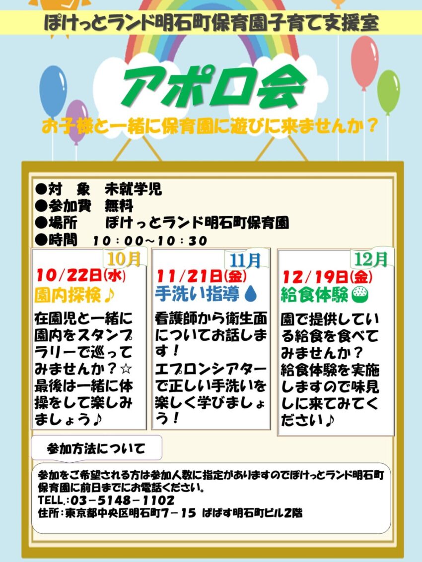 【保育体験会実施】はじめましての方大歓迎~アポロ会~