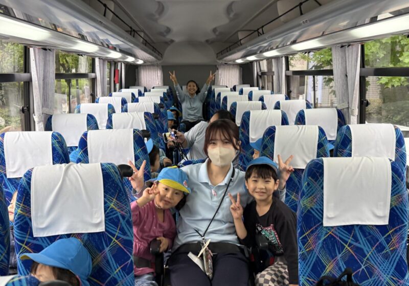 バスに乗ると期待を膨らませ、ドキドキの表情を見せてくれました。バスレクではクイズを楽しみました。保育園の先生たちにまつわるクイズで楽しく参加してくれました。
