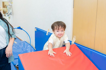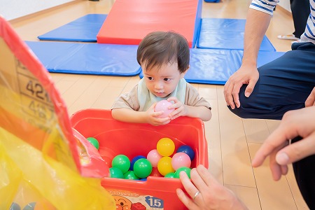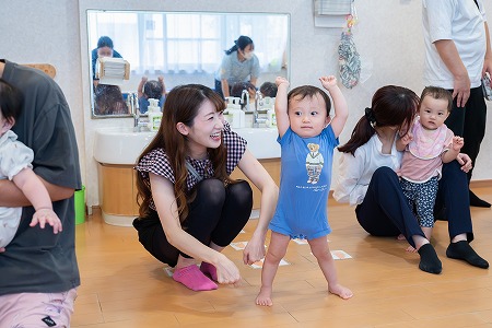 抱っこされて安心したり、お友だちと顔を見合わせたりと、