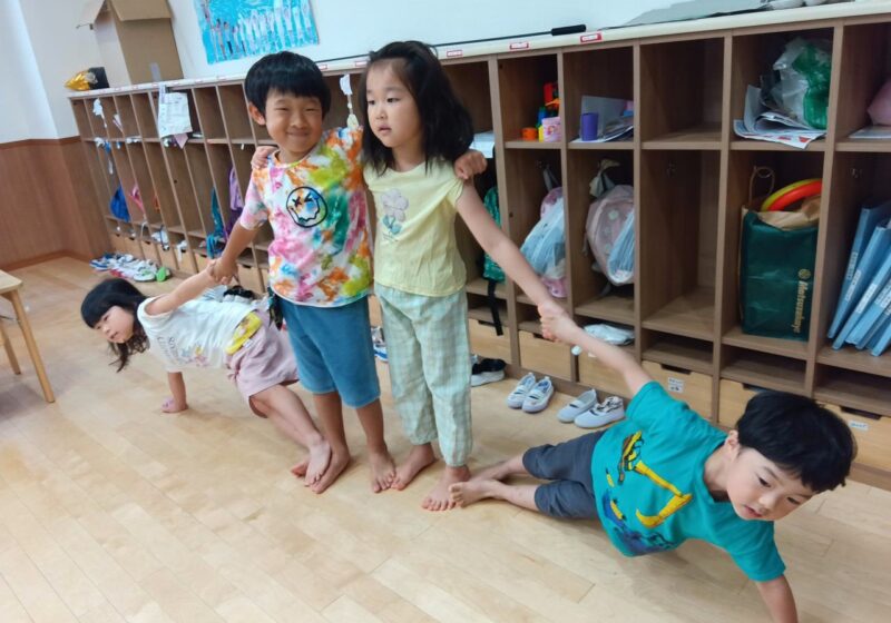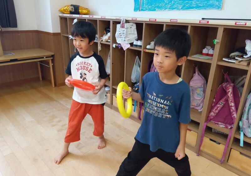 お友達同士で見せ合って意見を交換したり、遊びの一環で技の練習をするなど運動会へのモチベーションがどんどんあがっていました。