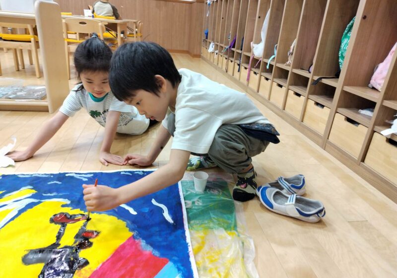 また、ソーラン節やリレーの練習、Tシャツ作りや大漁旗、クラス旗の製作など練習や製作物もあって忙しい一か月であっという間に本番前であと少し、にじ組の最後の運動会をぜひ楽しみにしていてください。