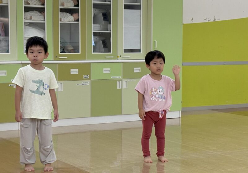 【3歳児】ほし組~9月の様子~ 2025.10.01 9月は運動会の練習に精を出すほし組さん! 玉入れやダンス、親子競技の練習に日々意欲的に取り組んでいます。 特にダンスは熱が入っており、「早く見せたい!」とお家の人に見せることを楽しみにしている様子でした! 戸外活動に行ける気温も増え、お外では遊具や追いかけっこをして元気に遊んでいます!