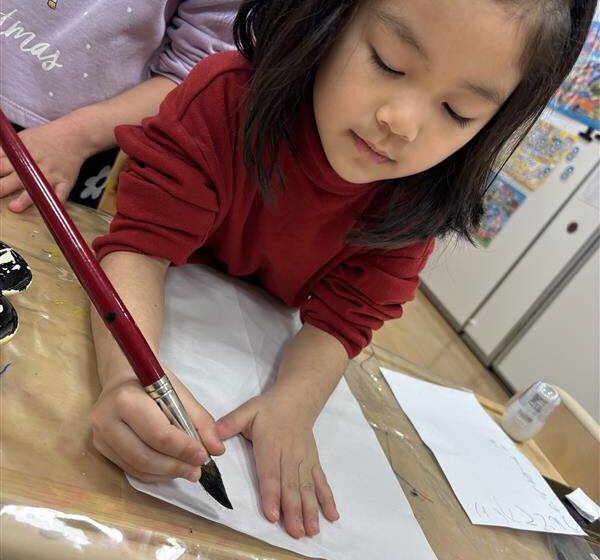正月遊びでは福笑いに挑戦したり、書初めで今年頑張りたいことを書いたりと正月ならではの遊びを楽しみました!