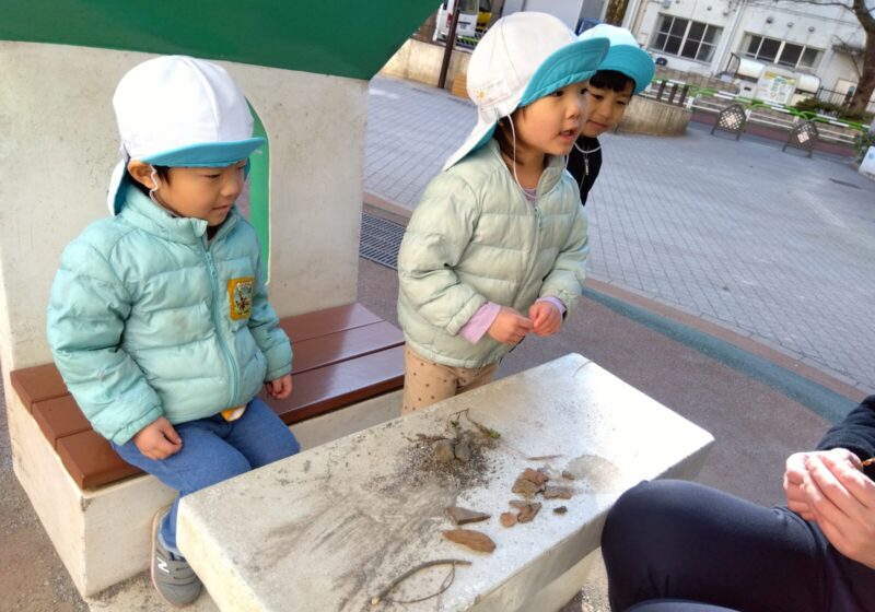 【3歳児】ほし組~1月の様子~ 2026.02.26 新しい年が始まり、なんだか新鮮な気持ちがしますが、子どもたちはいつもと変わらず元気いっぱいに日々を過ごしています。 今月は発表会に向けての練習を頑張ったり、暖かな日には戸外に出て、探索や集団遊びをしたりして過ごしています。最近では霜柱を探すのに夢中になっており、触ったり踏んだりして、音や感触を楽しんでいます。