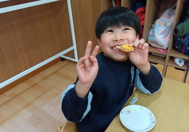また、おやつにはなんと一人ひとりの名前入りマショマロサンド、自分の名前を見つけて大興奮でした。