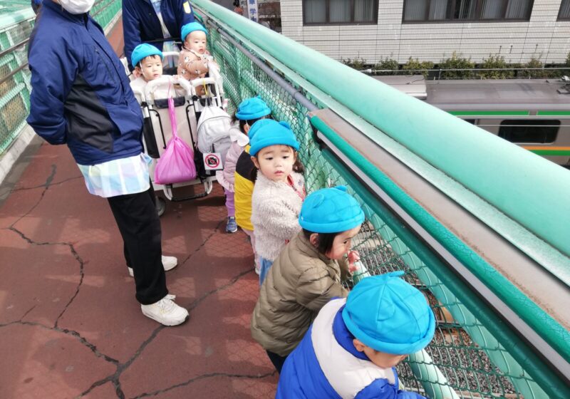 公園で保育者やお友達と身体を動かし暖まったり、乗り物大好きな子どもたちなので電車や消防車などもを見に行くことも楽しんでいます!