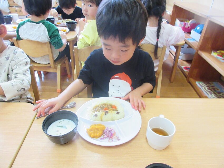 給食もハロウィンメニューです!「おいしい!」「かわいい!」といつもよりたくさん食べてくれました!