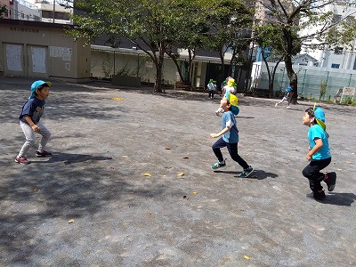 運動会の練習の合間には、友達同士で走って競争したり、色々な種類の鬼ごっこをしたり、遊具を使って遊んだりするなど、たくさん動いて遊んでいる子どもたちの表情を見るととても活き活きとしています!
