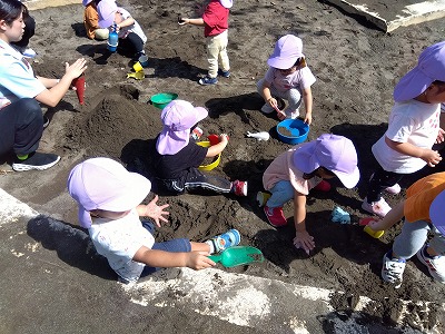 戸外へ出ると、お友だちと手を繋ぎ嬉しそうに歩き出すことができました!