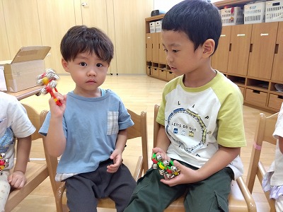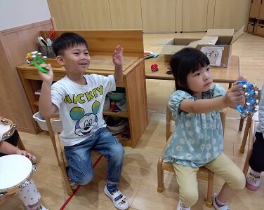 今週は、4歳児クラスのお友だちと一緒に楽器遊びをしました。