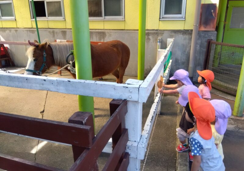 先日は、少し遠くにある上千葉公園までお散歩に出かけました。歩いている途中では、「どんな動物がいるかな?」「ポニーいるかな?」と話しながら、期待を膨らませていた子どもたち。公園に着くと、実際にポニーを見ることができ、「いた!」「かわいいね!」と嬉しそうに目を輝かせていました。