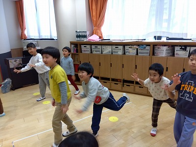 今日は違うクラスの職員がダンスを紹介しに来てくれたので、4、5歳児合同で、参加しました。
