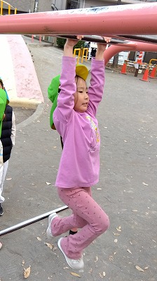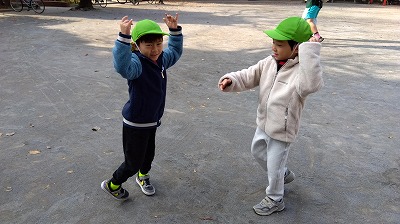 寒さも感じさせないほど、元気いっぱいに遊んでいる子どもたち。特に、最近少しずつ身についてきた交通ルールも見られました。道路に出るときには、きちんと左右を確認し、手を上げて渡る姿に成長を感じました。