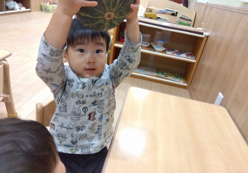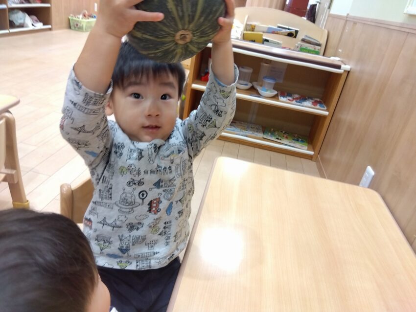 今月の食育では、かぼちゃに触れました!
