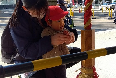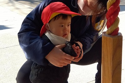 年明けひよこ組の全員が初めて揃った日に、園の近くの香取神社へ初詣に行ってきました。