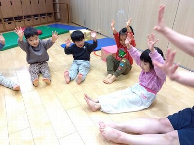 体操教室では、はじまりの挨拶の際に全員がかっこよく体操座りをして待つことが出来ていて講師の先生に褒められるととても嬉しそうにしていました。今回は、腕を使うことをメインに行いました。腕の力を使って鉄棒で足掛けをしたり、高さのあるマットに登ったり、壁逆立ちをしたりと楽しく体を動かしました!腕の力をもっとつけられるように、体操教室以外でも腕を使った遊びをたくさん取り入れていきたいと思います!
