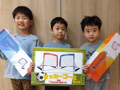 そして令和7年度5歳児クラスの保護者の皆様から卒園記念品として「サッカーゴール」と「絵本『ミッケ!』」をいただきました。