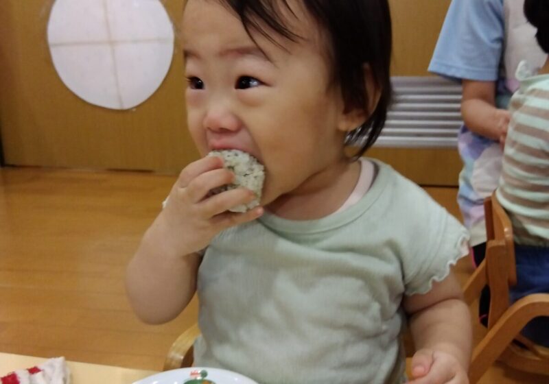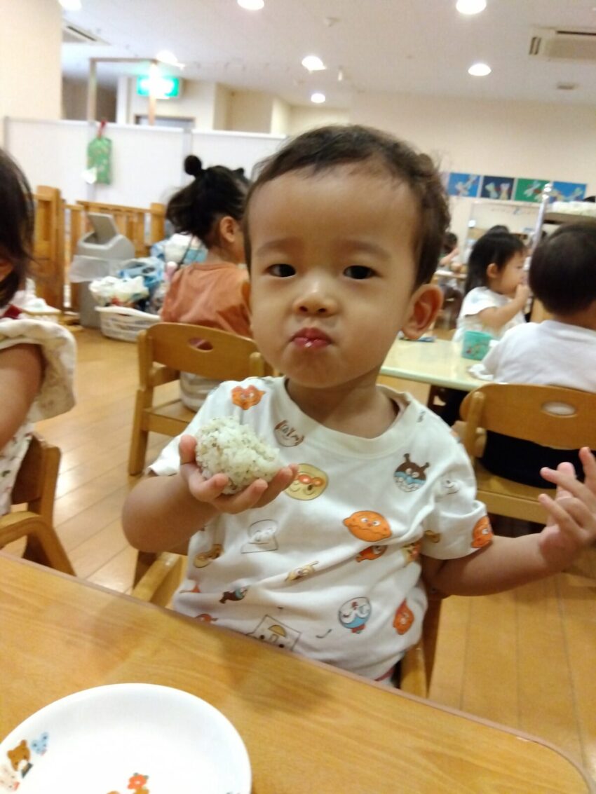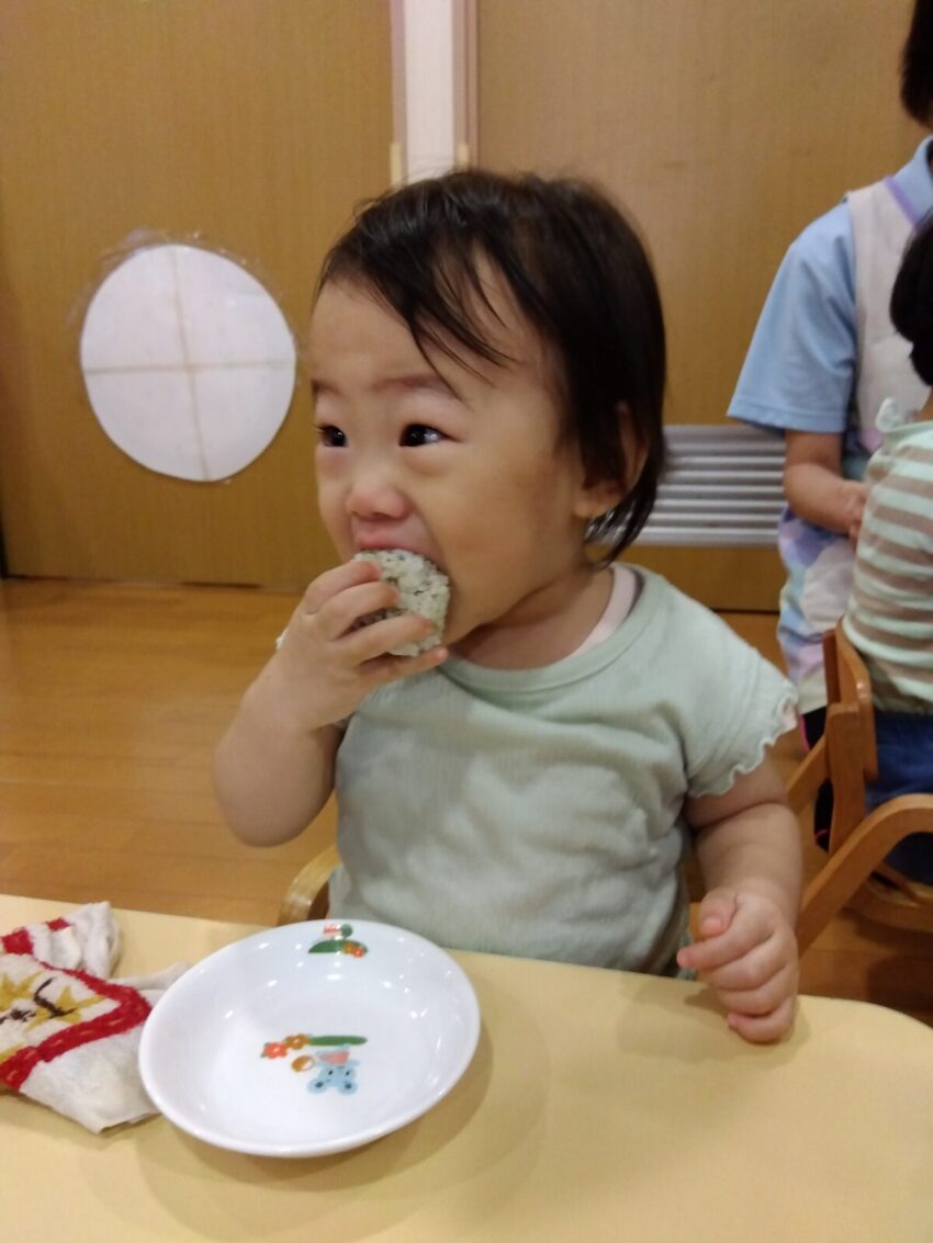 普段以上に大きなお口でおにぎりを食べていたお友だちでした☆