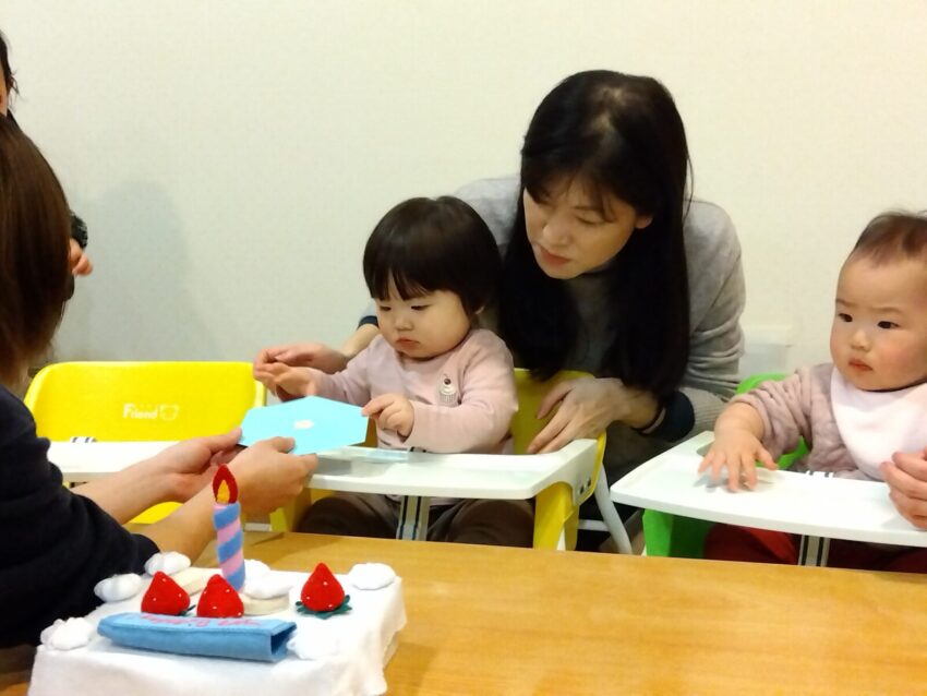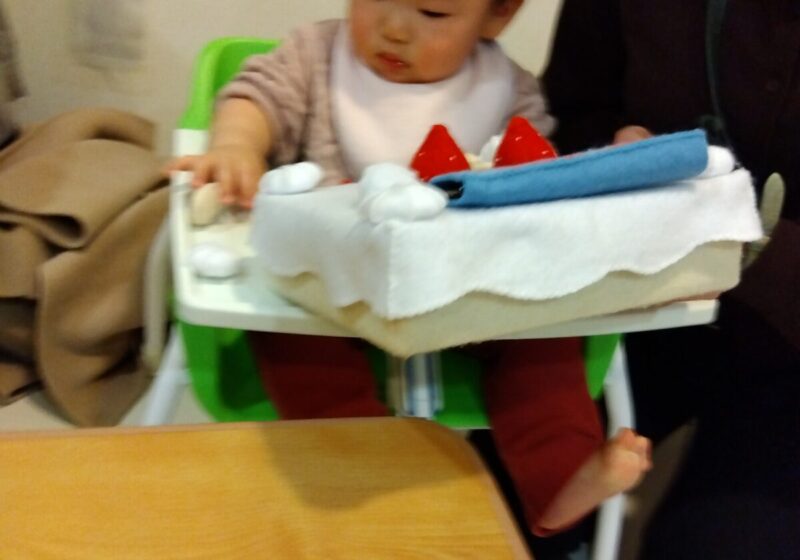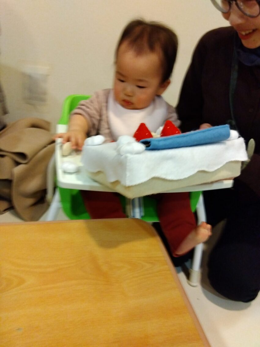 お母様や、お友達に囲まれ、フェルトケーキを完成させたり、ハッピーバースデーのお歌を歌ってもらったり♪