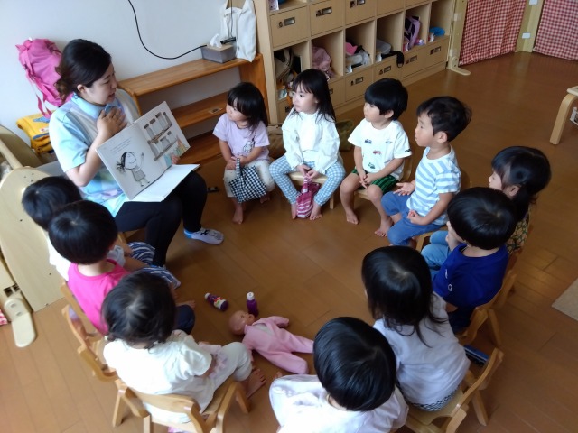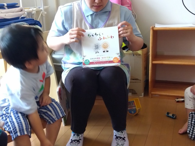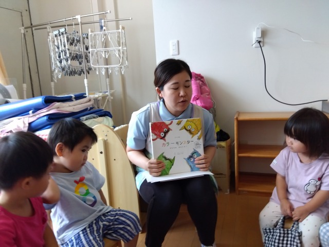 話すことが上手になり、言葉数も増えてきた2歳児の子どもたち。今回は“カラーモンスター”と“ちくちく言葉とふわふわ言葉”という2冊の絵本を使って言葉や気持ちのお話をしてみました。