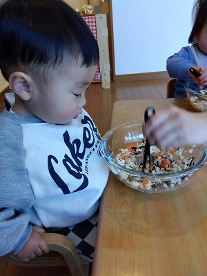 今年最初の食育として、¨白和えづくり¨を楽しみました。