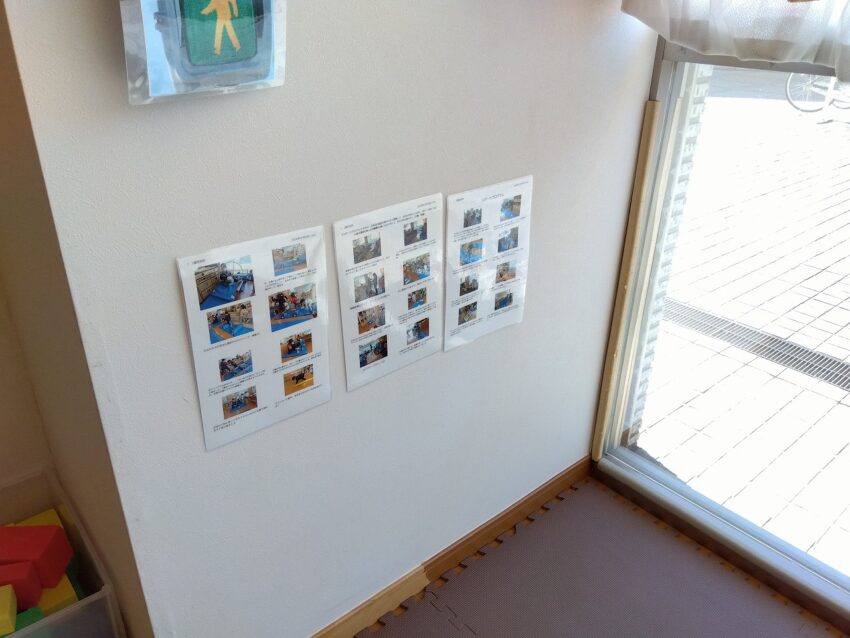 1歳児クラスでは、室内の様々な場所に写真を貼っています。