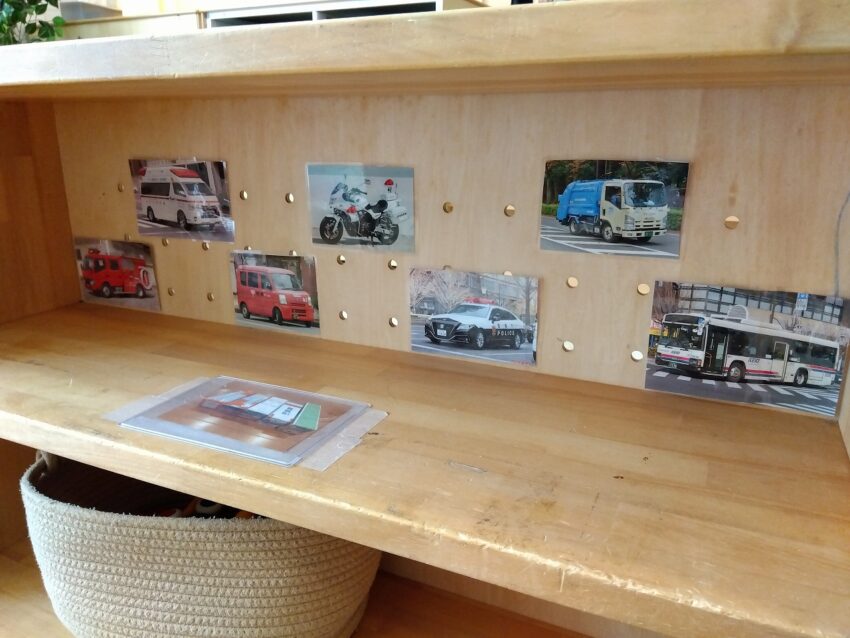 子どもたちの好きなものはもちろん、初めて見るものなどにも楽しく興味を持ったり、その写真について話したりして言葉の習得にも繋ぐことが出来るような環境を提供していきます。