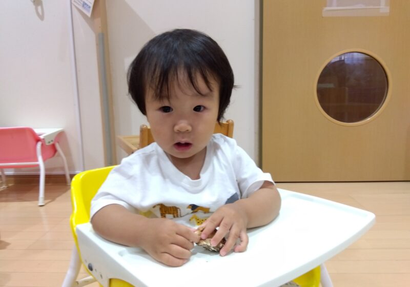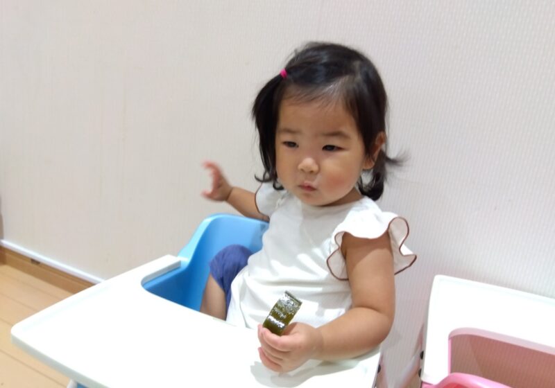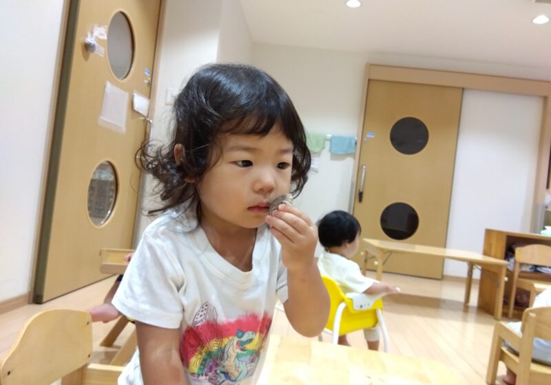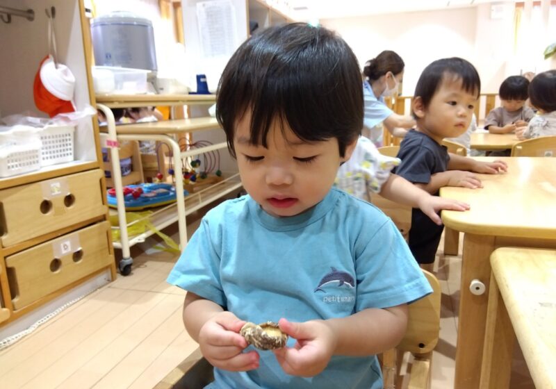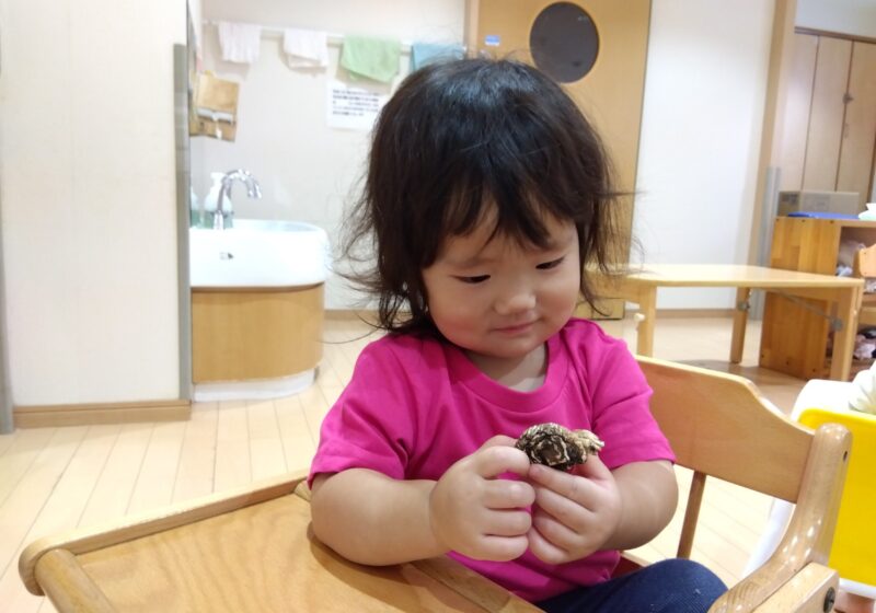 水に浸したしいたけなども触り、おいしそうに見えて口元に運ぼうとするなど興味津々な様子でした☆