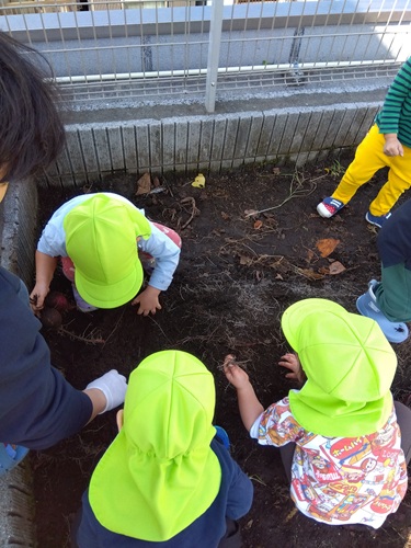 大きなお芋がいっぱいなっていたので、引っ張るのが大変そうなぱんだ組のお友だち。