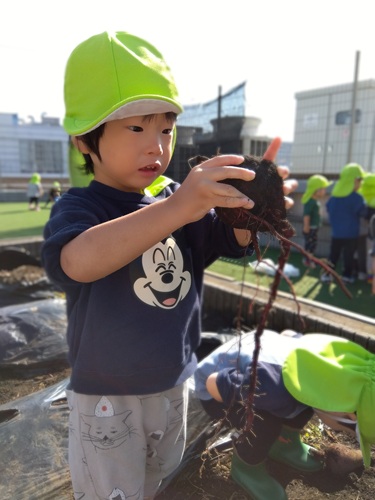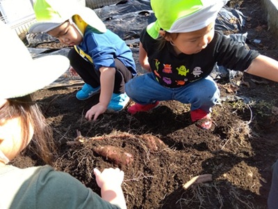 みんなで力を合わせて大きなさつまいもを取りましたよ!