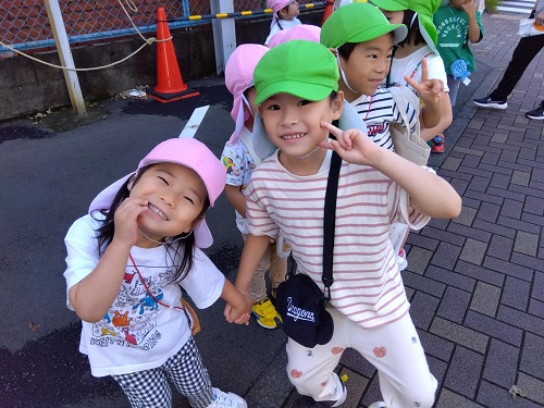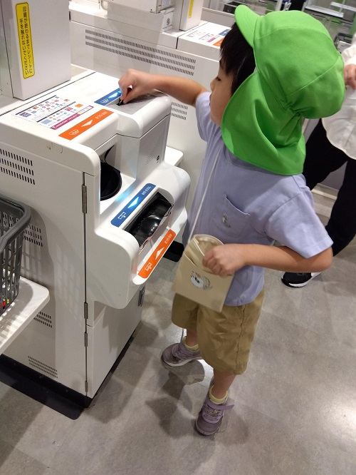 先日、2歳児クラスと5歳児クラスで買い物体験にでかけました!お店では、自分で選んだおやつを手に取り、レジで購入する体験をしました。