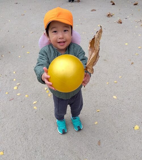 保育士と一緒にボール遊びも楽しみました。ボールがころころ転がると、一生懸命に追いかけて拾い、満面の笑顔をみせてくれました😄遊びを通して、子どもたちの豊かな表情がたくさん見られた一日でした😊