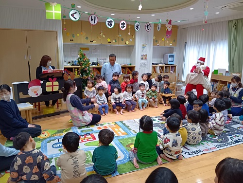 クリスマス会をしました✨会が始まるとサンタさんが登場して子どもたちは大喜び🙌🎅
