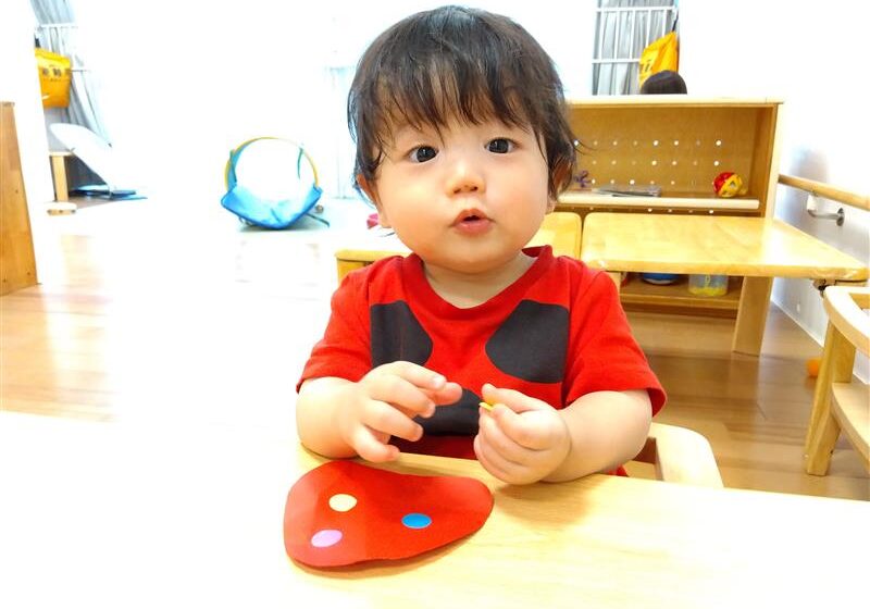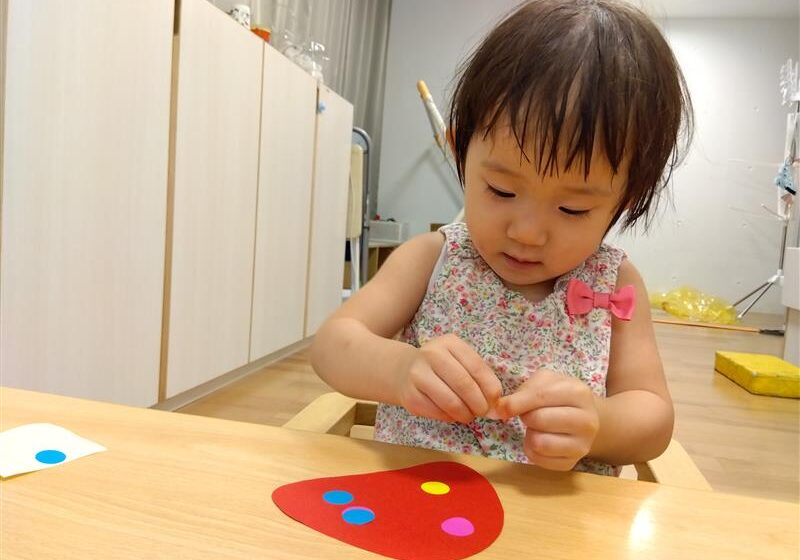 以前はシールを自分で剥がすのが難しかった子も、今では自分でシール台から剥がして画用紙に貼る姿が見られます。貼れたときには笑顔があふれ、達成感を感じている様子もありました😊