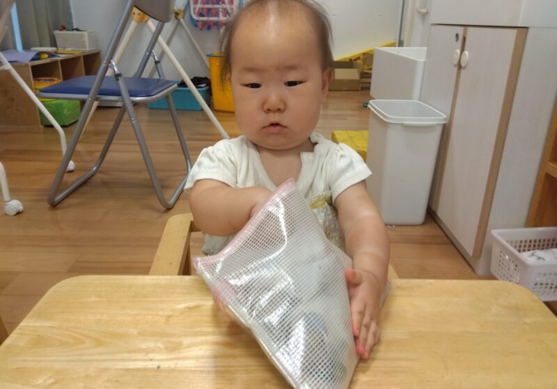 4月に比べお兄さん・お姉さんになってきた0歳児クラスの子どもたちは、できることも増えてきました✨