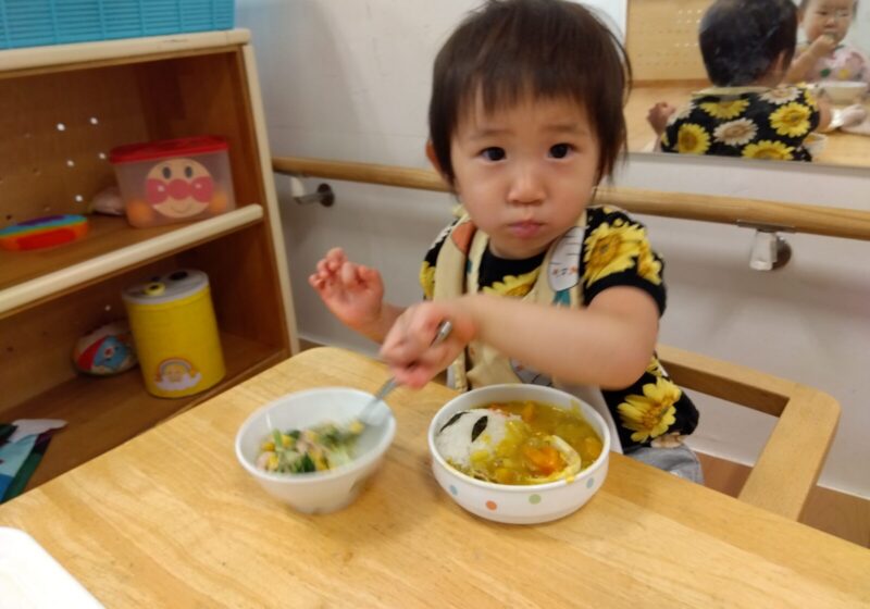 掴み食べやスプーンを使って、上手に食べ進めることができるようになりましたよ!