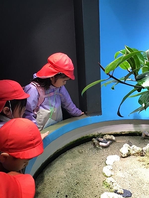 お別れ遠足ではサンシャイン水族館に行ってきました!遠足に行く前から楽しみにしていたわかくささん。お部屋にある図鑑を見てお魚を調べてみたり、絵を描いてみたりと興味津々な様子が見られました。