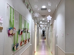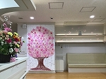 園児79人全員で作った手形の桜の木が玄関で出迎えています。