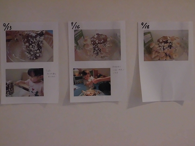 生長を廊下にも貼り出してくれていますよ。