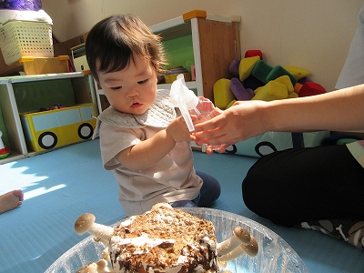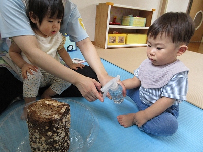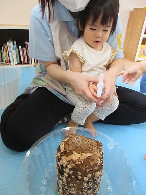 0歳児クラスで9月の途中からしいたけ栽培をはじめました。