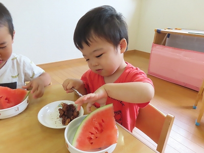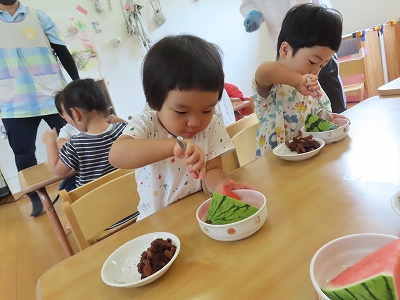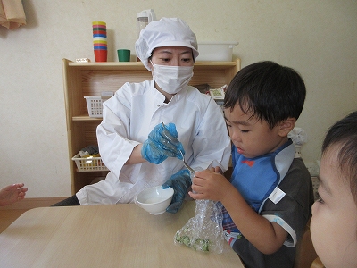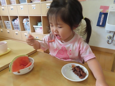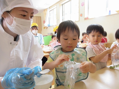 2歳児クラスの食育の様子です。