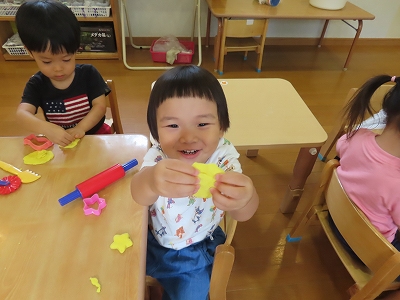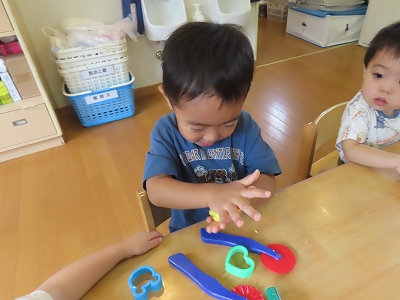 手の力も付いてきて粘土をこねて形作っていくことも上手になっています。