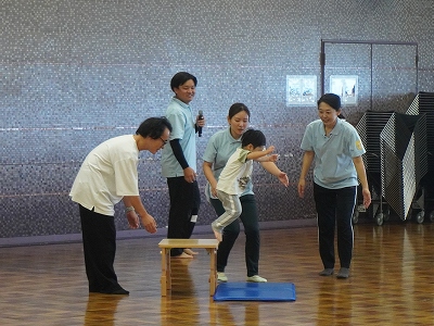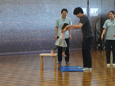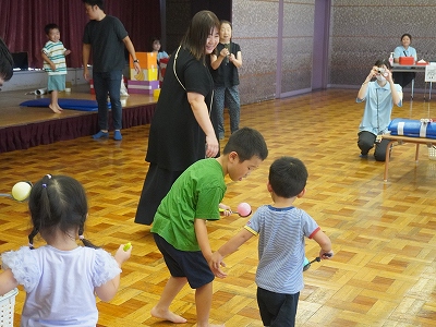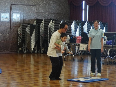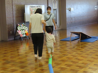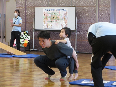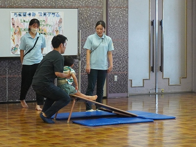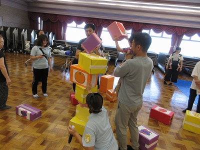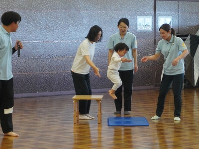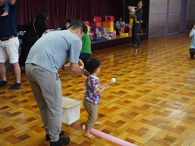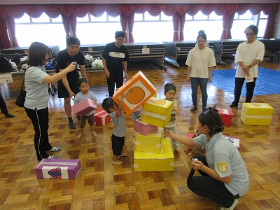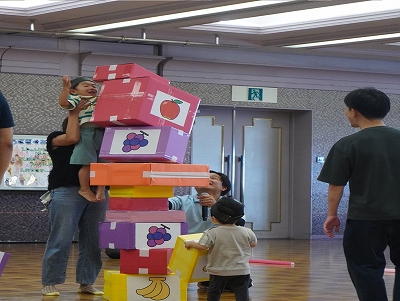 最後の方は、保護者の方に抱っこなどで高くあげてもらい更に積み重ねていきました。