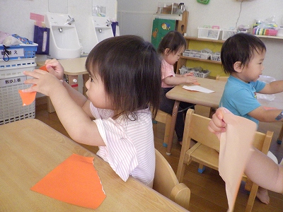 折り紙をちぎって素敵なかぼちゃやおばけなどを製作した10月でした。