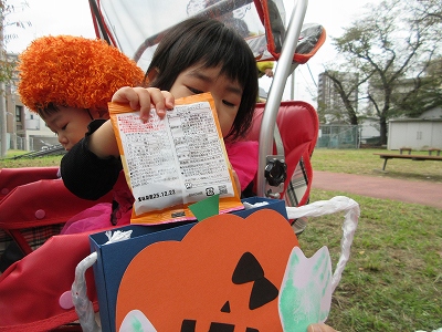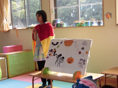 ハロウィン会では、お話を聞きながら『トリック・オア・トリート!』の