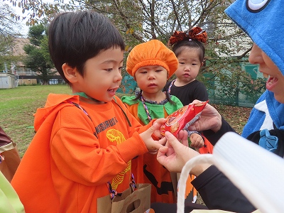 園の職員も仮装をしていたので始めは少し戸惑う子もいましたが