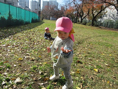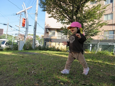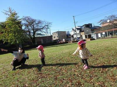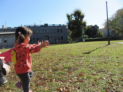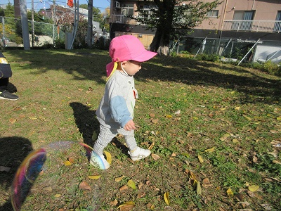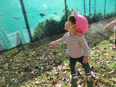 空を見上げたり、しゃぼん玉を追いかけたり、葉や花をみつけたり、